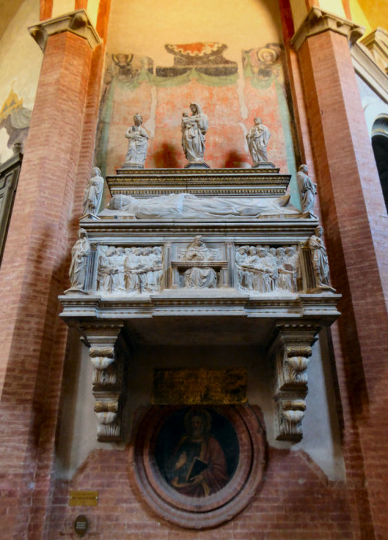 Against the sanctuary wall, opposite the chapel entrance, is the tomb of Antonio Galeazzo Bentivoglio, Annibale’s father,
