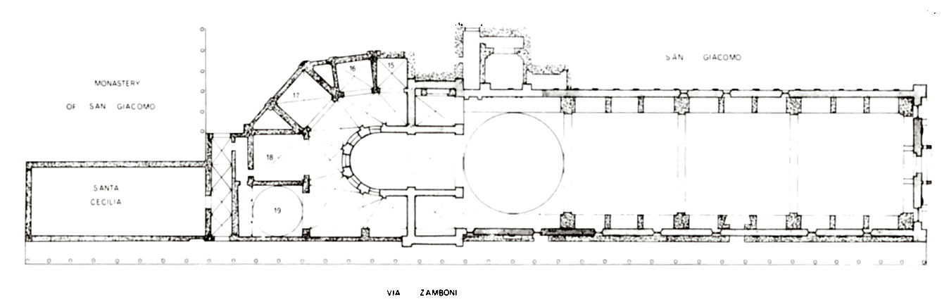 Portico of Via S. Donato and Facade of San Giacomo Maggiore by Antonio Basoli (see