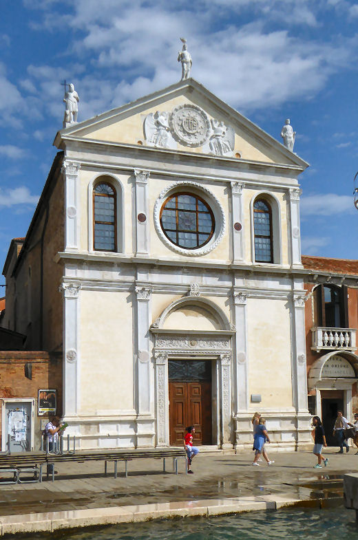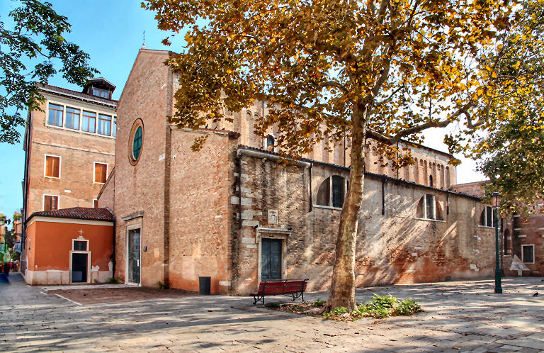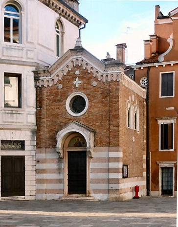 History Founded perhaps in the 10th century, this church was first mentioned in a document of 1081. It was rebuilt after a fire in 1105, but much of the original nave's brickwork remains. Reconsecrated in 1321, with interior decoration work in 1604 and 1670 by Lodovico Bruzzoni, and more restoration work in 1733. Suppression by the French followed in 1810 and the church was stripped of its art and furnishings. After a time being used as a warehouse for firewood and coal the church was acquired in 1839 by Antonangelo and Marcantonio Cavanis. Restoration work on the interior and façade followed and the church reopened in 1872 as an oratory for the nearby Educational Institute of the Cavanis. More restoration work in 1939. Art highlight Reportedly the only remaining art of note is a Guardian Angel by Lattanzio Querena. Lost art The Coronation of the Virgin by Michele Giambono (see below), now in the Accademia, was commissioned in 1447 by Giovanni Dotto for the high altar here. The commission came with the stipulation that the work be finished in a year and be an exact copy of the Coronation of the Virgin by Antonio Vivarini and Giovanni d'Alemagna in San Pantalon. One scholar has argued that this Accademia Coronation is also the work of Antonio Vivarini and Giovanni d’Alemagna and not Giambono's work for this church at all. Giambono also designed mosaics - he signed the mosaic of the architecture-dominated Presentation of Mary in the Temple in the Mascoli chapel in San Marco, amongst other scenes from the life of the Virgin, the creation of which he was also involved with. The inspiration for both of these Coronations has been identified as the version painted by Guariento di Arpa in the Palazzo Ducale ![]() Campanile Was also 12th-century (see map below) but demolished in 1837-38. The lower part still stands, though, topped by a three-arched bell tower. Opening times Only the door to the little chapel to the left of the main entrance ever seems to be open. It is said to host services on weekdays at 7.30. Vaporetto Zattere map ![]() |