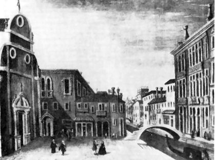 History![]() The original church of San Vio (dedicated to Saint Vitus and his partner in martyrdom Saint Modestus) was built in 912 by the Vido and Balbi families. It was rebuilt in the five years following Bajamonte Tiepolo's unsuccessful conspiracy against the republic on the 15th June 1310, using masonry from Tiepolo's demolished palazzo at Sant'Agostin - the door to the palazzo becoming the door to the church (see print left). The doge and signoria would visit the church annually on that day, which is also Saint Vitus's day, to commemorate Tiepolo's defeat. In 1354 the small campo in front of the church was extended down to the Grand Canal, by demolishing the Tagliapetra palazzo, so that the dignitaries would have a grander approach. The church had seven altars, under one of which was placed the miraculously preserved (and miracle-working) body of the Contessa Tagliapetra. The was a cupola with frescoes by Girolamo Brusaferro and altarpieces that were school-of Veronese and Giovanni Bellini. Restoration work in 1745 found the floor of the original church, 8ft below the then floor level. The church was closed in 1808 and declared dangerous and demolished in July 1813. Fragments from the church were used in the building of the current oratory which was built nearby by Gaspare Biondetti Crovato, to a design by Giovanni Pividor and opened in 1865. Fragments from the house of Bajamonte Tiepolo were reused again, around the door. It is now a private residence, belonging to one Piero Pinto at last report, and closed to the public. A banner on the wall of the current building in November 2021 announced maintenance work on the interior and gave the client’s name as Robert Holmes Tuttle. who might well be the current owner. Rosalba Carriera's tomb The original church was the burial place of painter Rosalba Carriera and her sister Giovanna, who both lived nearby. The oratory had a stone plaque on the wall engraved with the words Rosalba Carriera Pittrice 1757 but this is now gone. Vaporetto Accademia map |