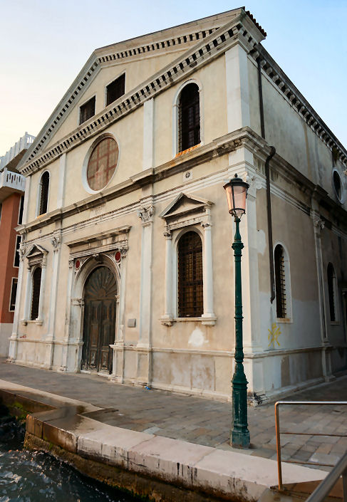 History Veronica Franco, we are told, in repentance for her sensual ways. and with the help of devout nobles, in 1578 established a shelter to temporarily house elderly and destitute prostitutes and adulterers separated from their spouses, called the Pie Case del Soccorso. The aim was to prepare the women for work, marriage or a vocation. Following the decision to also help and house their husbands larger premises were needed, and found in the parish of San Raffaele, completed by Simon Sorella, and occupied in 1581. Expansion followed and an oratory completed in 1594 and consecrated by Lorenzo Prezzato, Bishop of Chioggia in 1609 to the Virgin of the Assumption. The complex was restored in the mid-1700s. The institute lasted until 1807 when the women were moved to Santa Maria delle Penitenti and the oratory closed. The disused complex was bought by the priest of the Carmini church, called D. Marco Battagia, in 1860 to become a hospice for abandoned girls and later a school, but plans to reopen the oratory for worship came to nothing. Much work on the complex in the 19th and 20th centuries becoming university accommodation. The church housed a temporary Biennale exhibition in 2003 but following work in the next decade the complex is now luxury apartments. In 2013 the church was observed to now be a bare box with some remaining stucco work. See the update below for news of its recent transformation. Lost artAn altarpiece of The Foundation of the Casa del Soccorso from 1595 by Carletto Caliari, the son of Paolo Veronese (see right), is now in the Accademia. Two by Naitlingher and others by Giuseppe Enzo have been reported. Update October 2024 the church is now a very plush residence. |