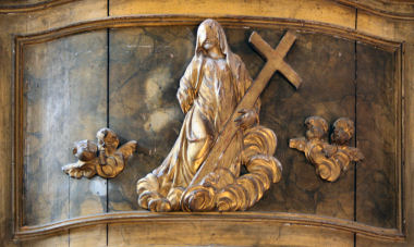 flanking them lower down. A lead-covered wooden statue of The Redeemer
