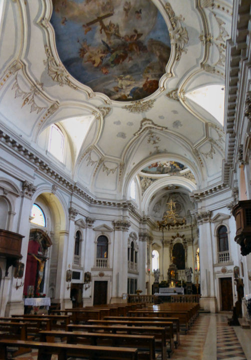 ![]() ![]() History Built on the site of a large burial ground, it is said, the church here became a parish church in 1308. San Massimo was the second bishop of Padua. The small medieval church underwent rebuilding in the 16th and 17th centuries, due to the popularity of the area for patrician family houses and to a charismatic parish priest, Father Giuseppe Cogolo, who commissioned paintings by Giovanbattista Tiepolo between 1742 and 1745. Parish church status was lost during the Napoleonic suppressions and the church was closed to worship. During World War II it suffered bomb damage. It reopened as a university chapel after a major restoration in the 1990s, although it suffered much loss of fittings during its years of closure. Interior Three altarpieces from c.1745 by Giambattista Tiepolo - Saint John the Baptist, The Flight into Egypt and Saints Maximus and Oswald, the last being reputedly the best. Also the tomb of the famous physician Giovan Battista Morgagni.