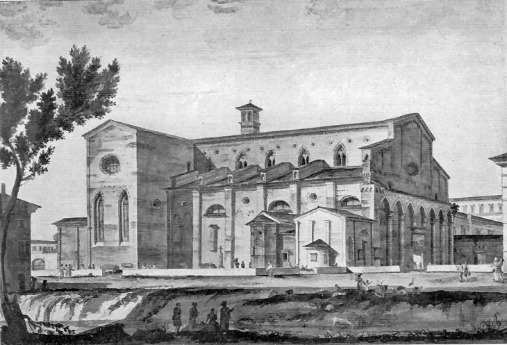 ![]() ![]() History Founded in 1226 by Dominicans on the west bank of the Bacchiglione River. A small oratory already on the site, dedicated to Santa Maria di Valverde served as a chapel initially. The new large brick church was consecrated in 1303. This church became something of a mausoleum for the Carrara lords and others from the local elite. Twelve trachite columns separated the nave from the aisles, and there were nineteen altars, which would eventually be topped by altarpieces of the 16th/17th centuries. There was a Donatello Crucifix, a polychrome terracotta Pietà by Giovanni Minello and works by Antonio Bonazza and Tommaso Allio. Suppressed in 1806 and demolished by the Austrians in 1829. All that remains is one of the two cloisters - it became a barracks and looks ruined, but still in use. The refectory of the barracks evidently still has a fresco fragment of a Dead Christ with Two Angels attributed to Guariento. Lost art The tombs of Jacopo II da Carrara and Ubertino da Carrara by Andrioli di Santi (now in the Eremitani church) were originally sited in the presbytery here, along with the fresco of Coronation of the Virgin with the two Carrara princes, by Guariento. An Adoration of the Shepherds with a Donor by Stefano dell'Azare (see right) is now in the Eremitani Civic Museum. As is the Resurrection of Christ with Mary Magdalene and Saints Augustine, Dominic and Andrew by Domenico Campagnola, and studio. The Deposition of Christ, with a separate figure of Carlotta of Lusignano, is a terracotta group made after 1483 by Giovanni de Fondulis. It was commissioned by Marietta of Patras, the Greek mistress of King John II of Cyprus, in memory of her granddaughter Carlotta of Lusigano, the illegitimate daughter of King James II of Cyprus. It was installed in the altar of San Salvatore, erected in 1483, in the left transept here. Carlotta's tomb was at the foot of this altar. It is now in the Isabella Stewart Gardner Museum in Boston. |