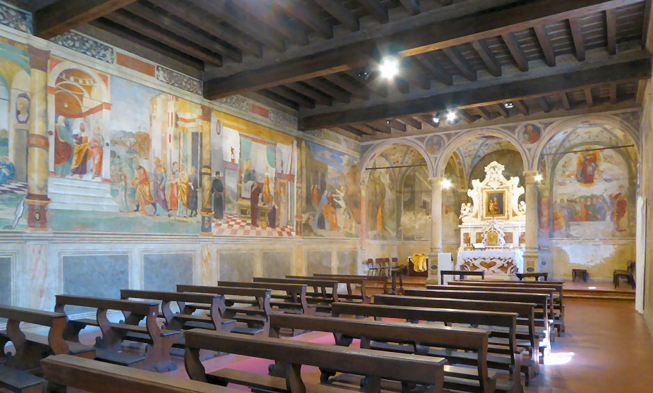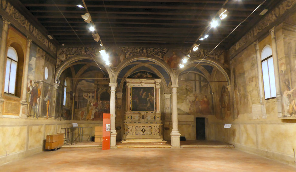 ![]() History A church here dates to the 14th century, where it is said that the Colombini met, they being a group of penitents devoted to Saint Anthony of Padua who formed a confraternity. They were suppressed by Napoleon and with the oratory set for demolition it was acquired in 1810 by Conti Alessandro and Francesco Papafava de 'Carraresi, which resulted in the building as it appears now, with works of 1817. Reopened to the public in June 2017 by the Archconfraternity of Saint Anthony of Padua, details here. |