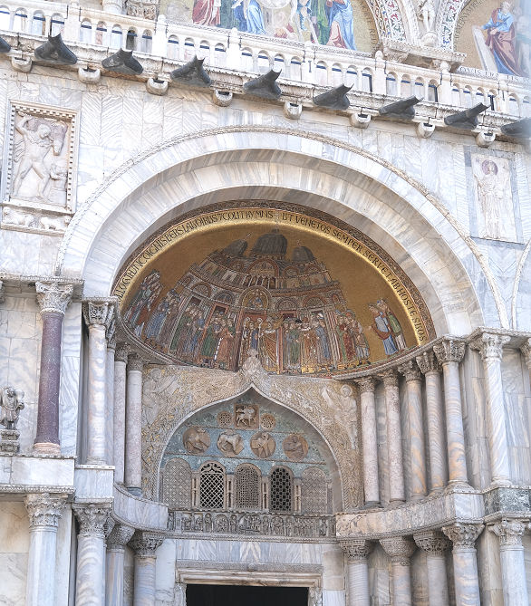 the body of Saint Mark being taken into the Basilica, and shows the façade