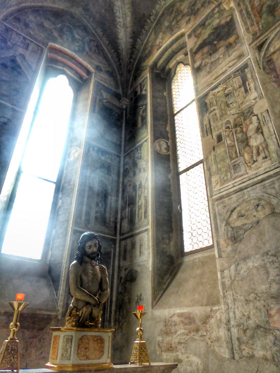 chapel beyond, the highlight 14th century Spolverini chapel, which is