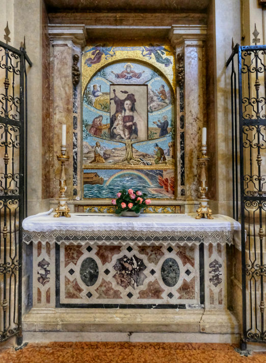 the Ibis) over a side altar, painted by Girolamo dai Libri, which has