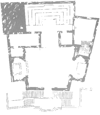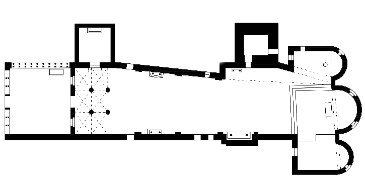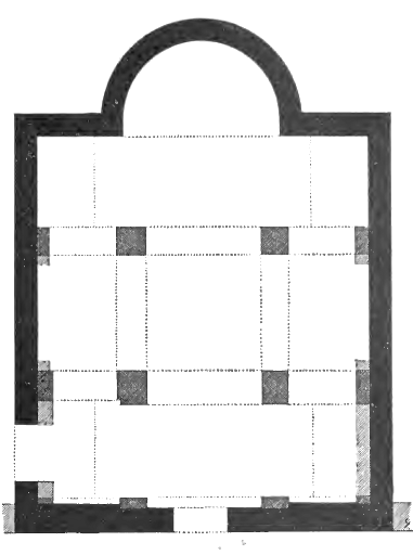 depressed barrel-vault ceiling. There are seven shallow and ornate