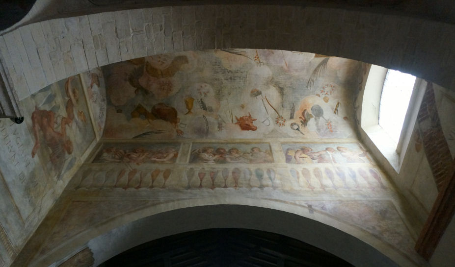 with early renaissance fresco work by Giovan Francesco Caroto . These frescoes depict stories from the Journey of