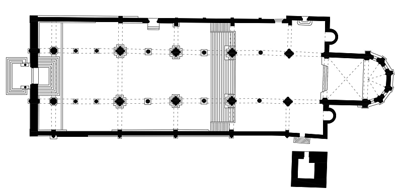 register takes the form of triptych but has a unified space, divided by
